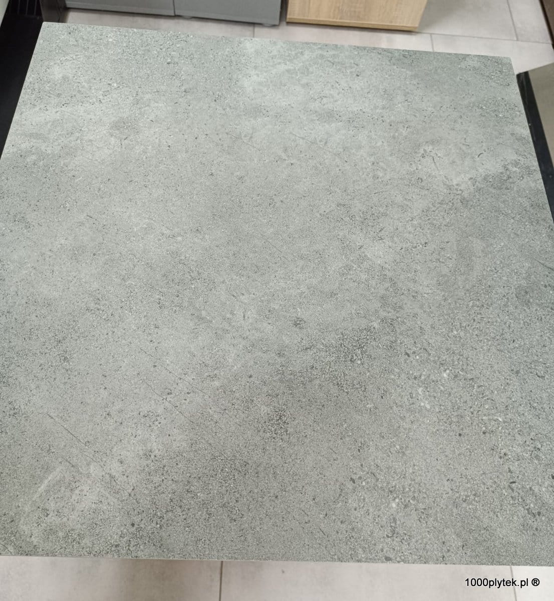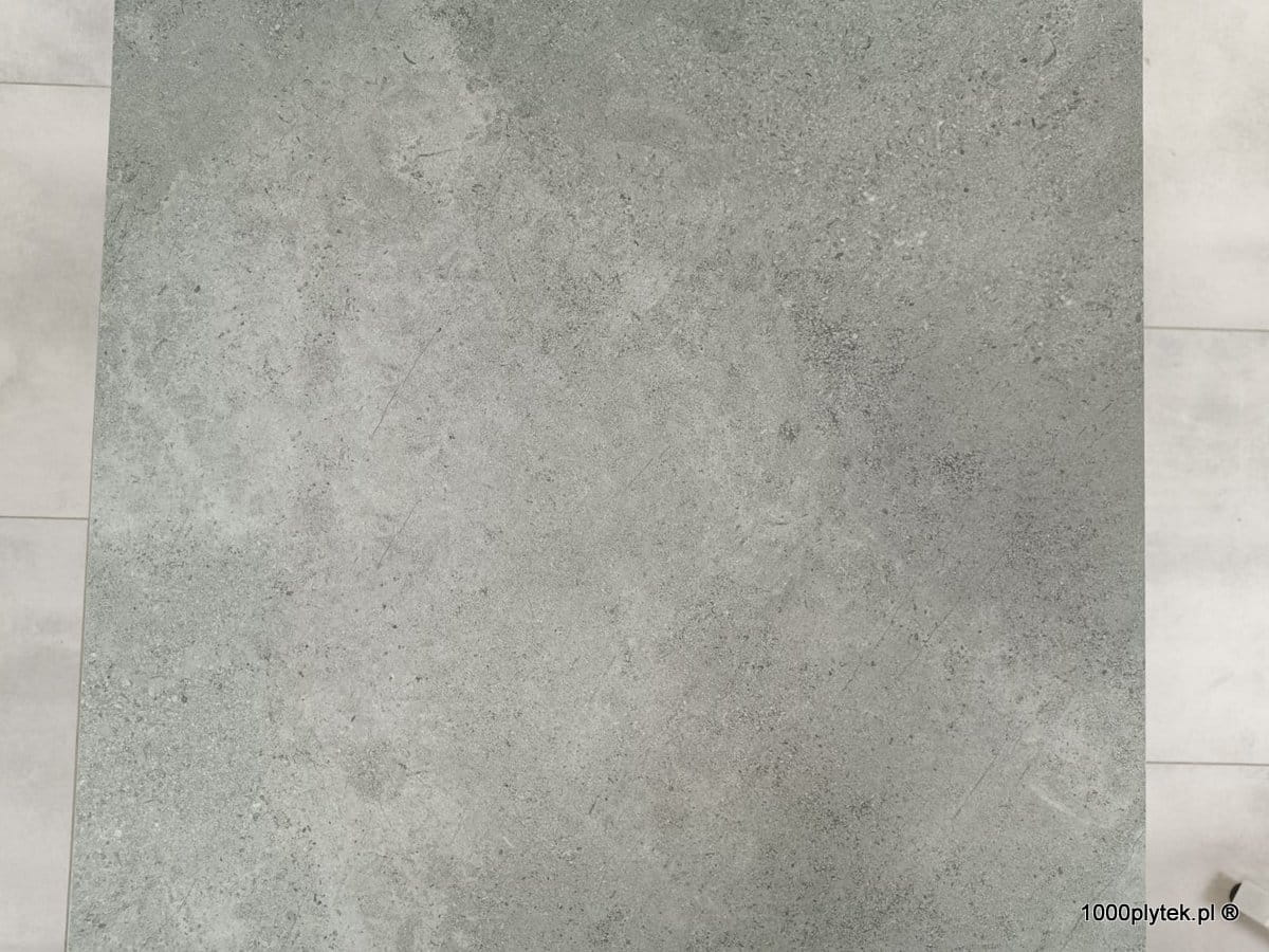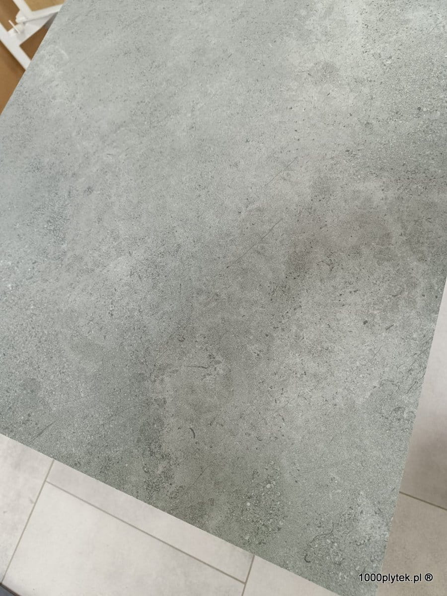 Średnio-szary mat betonowy / cementowy z subtelną fakturą, grubość 2 cm, R11 bardzo antypoślizgowy, mrozoodporny, gatunek I. Idealny na tarasy wentylowane, balkony, ścieżki, strefy basenowe i aranżacje miejskie/industrialne.