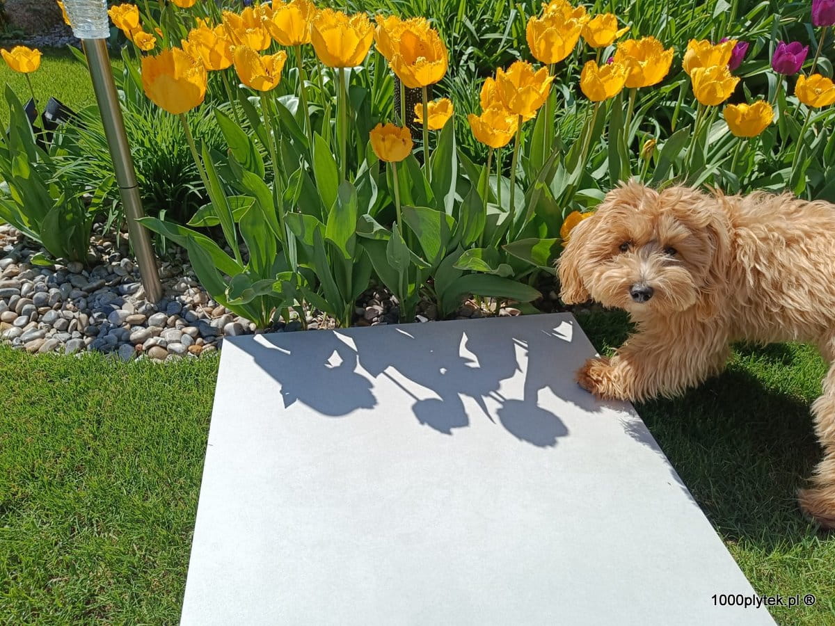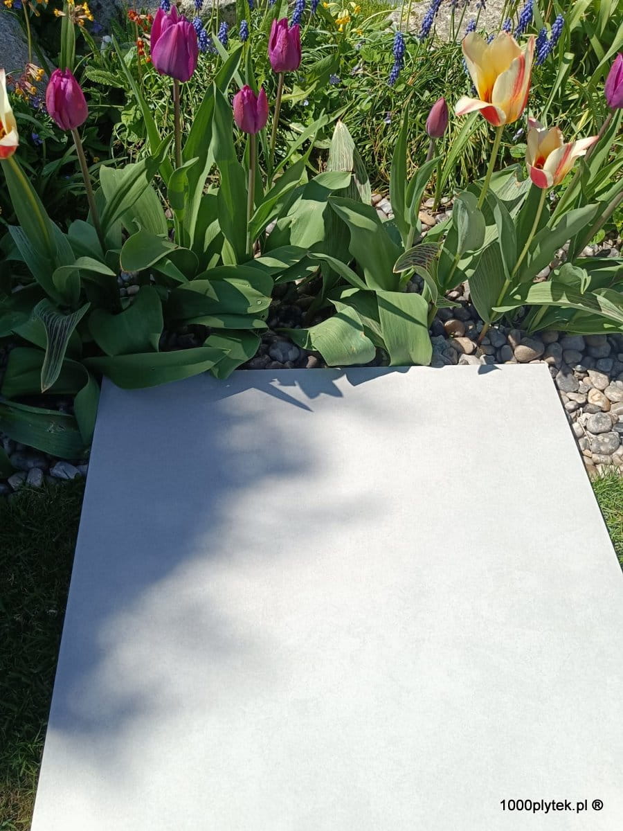 Jasny mat betonowy / cementowy, grubość 2 cm, R11 bardzo antypoślizgowy, mrozoodporny, gatunek I. Idealny na tarasy wentylowane, balkony, ścieżki, strefy basenowe i nowoczesne aranżacje loftowe/industrialne.