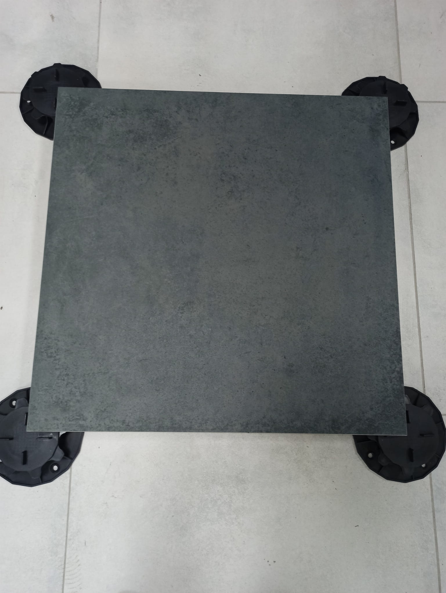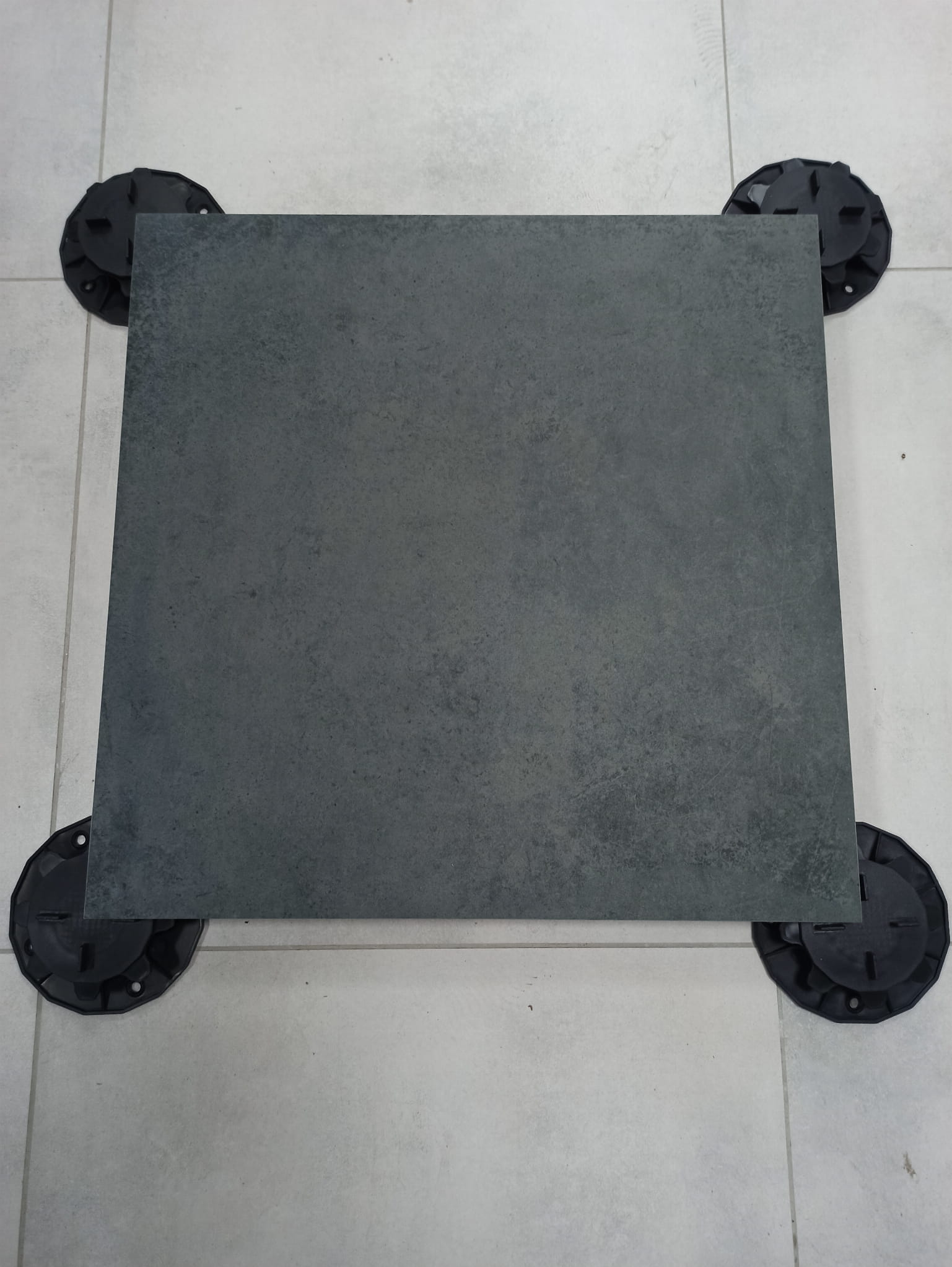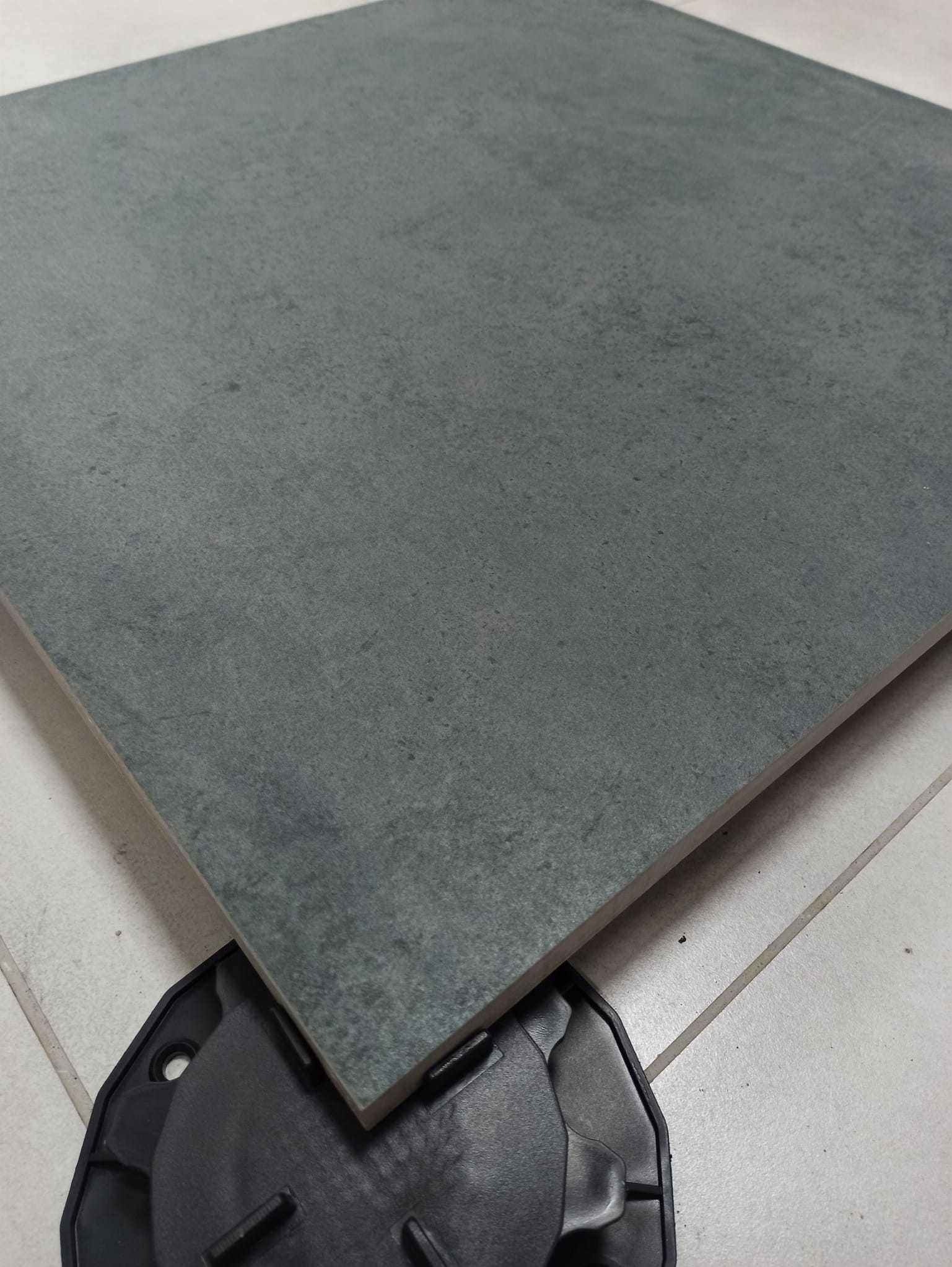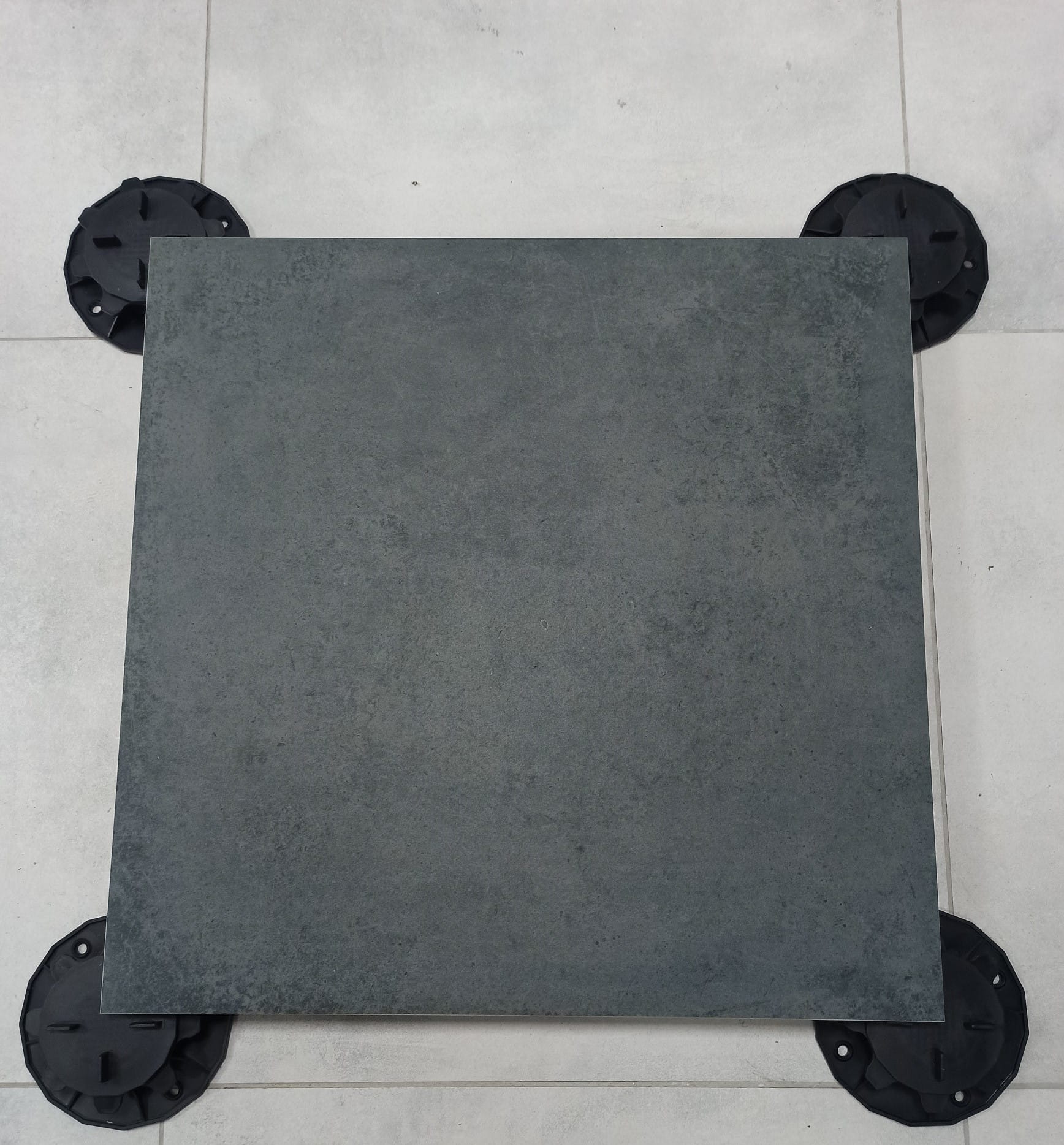 Ciemny antracyt mat z subtelnym, surowym wzorem betonu i naturalnymi przebarwieniami, grubość 20 mm, antypoślizgowy R11, mrozoodporny, rektyfikowany, gatunek 1. Idealny na nowoczesne tarasy, balkony, podjazdy, ścieżki, duże powierzchnie zewnętrzne, garaże i strefy techniczne w industrialnym, minimalistycznym / eleganckim stylu – głęboki, ciemnoszary betonowy look bez przegrzewania się.
