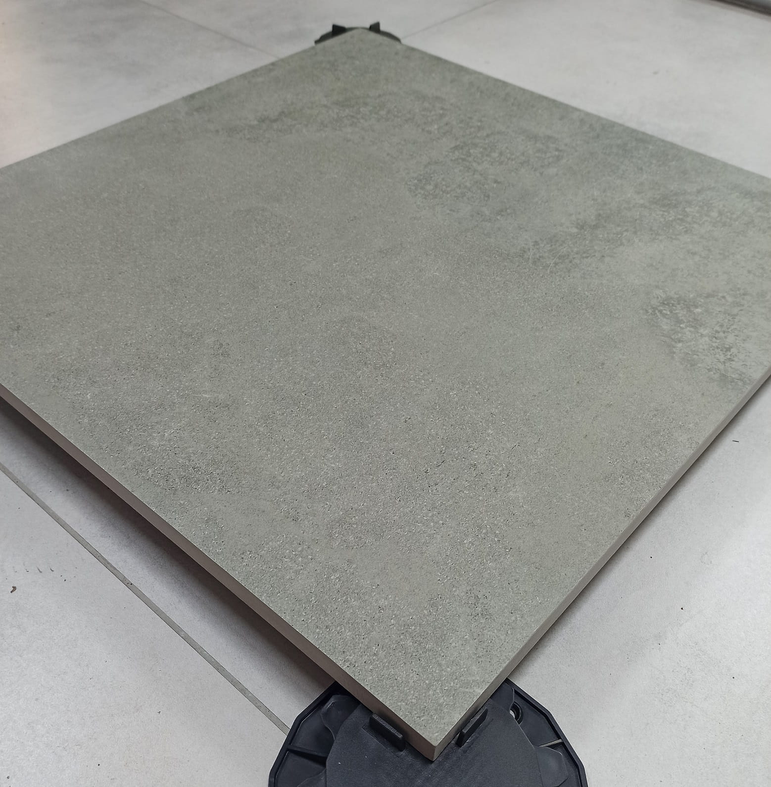 Ciepły taupe (beżowo-szary) mat z subtelnym, surowym wzorem betonu i naturalnymi przebarwieniami, grubość 20 mm, antypoślizgowy R11, mrozoodporny, rektyfikowany, gatunek 1. Idealny na tarasy, balkony, podjazdy, ścieżki, duże powierzchnie zewnętrzne i techniczne w nowoczesnym, minimalistycznym / ciepłym / eleganckim stylu – neutralny, betonowy look bez przegrzewania się w słońcu.